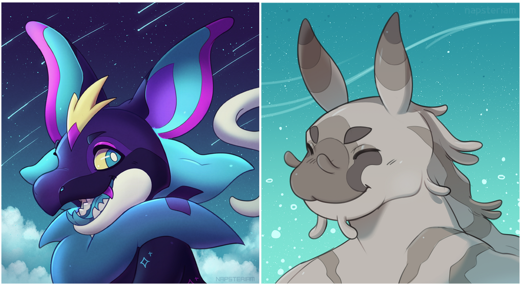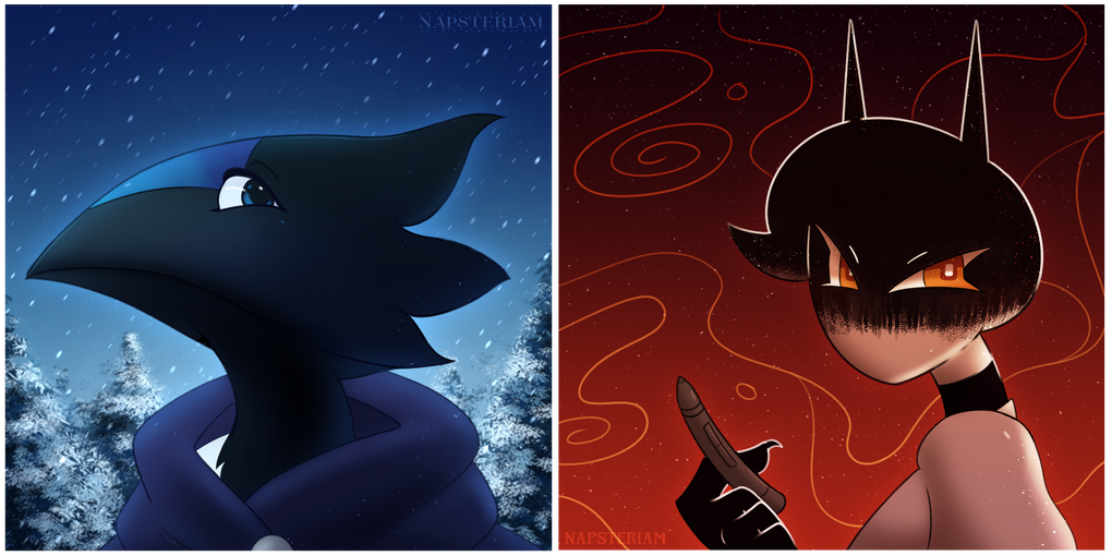 The artist retains authorship rights to both cancelled and complete works. The artist may use this work to promote themselves and upload it to their online portfolios. The artist does not claim ownership of any client's characters and will not sell copies of completed pieces unless given permission from the client.
